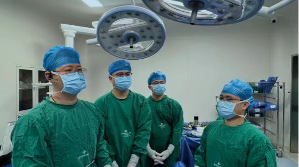 戴维(左1)带领团队进行线上手术直播