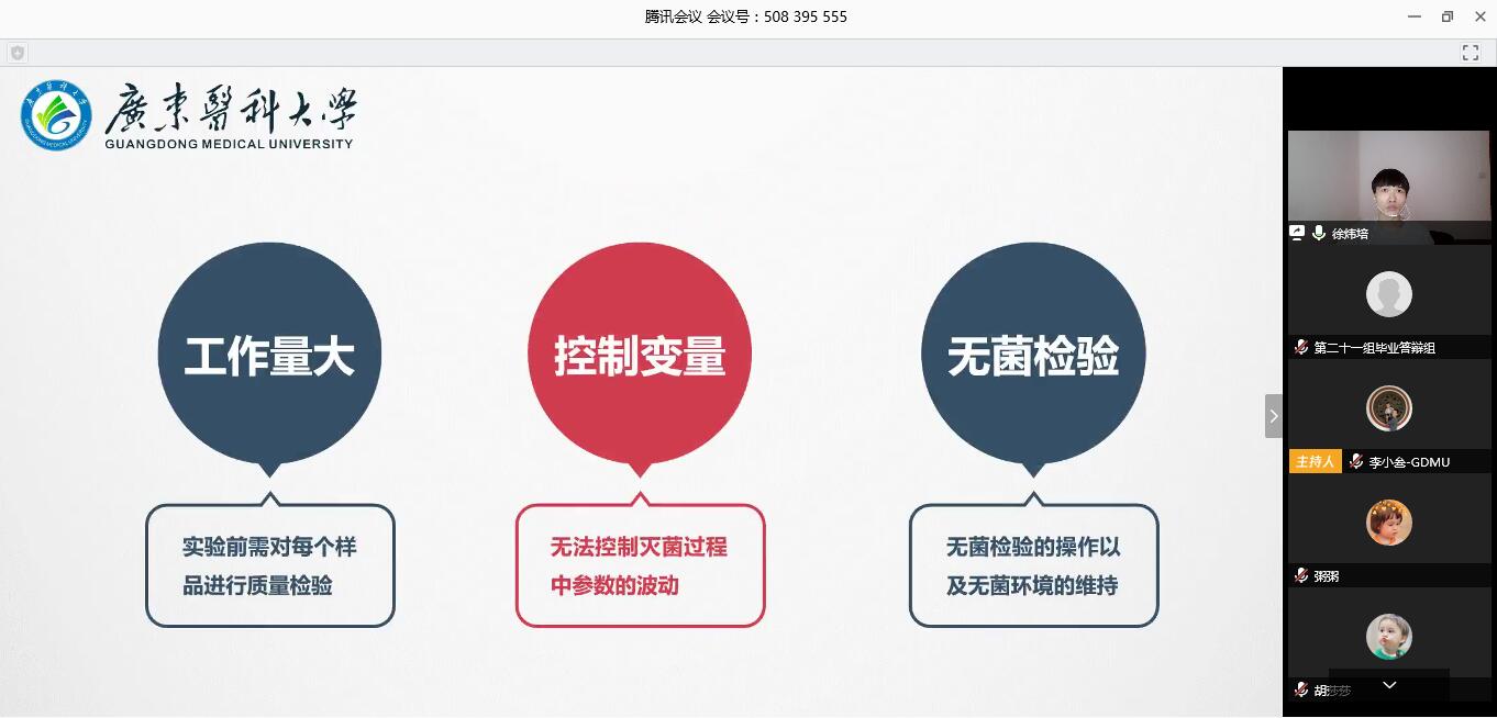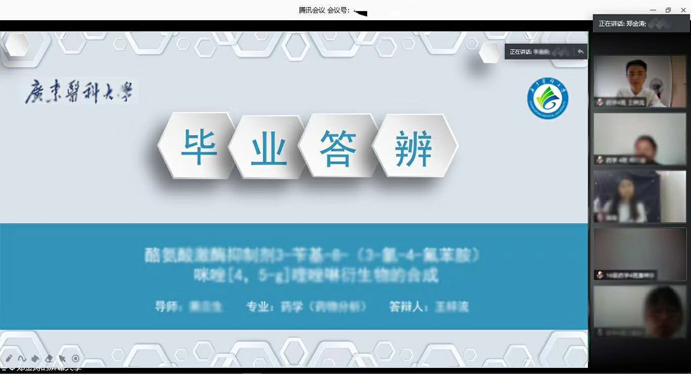 5月16日,药学院2020届本科毕业论文线上答辩顺利进行。本届毕业生共设置21个答辩小组,共有63名教师和507名同学通过腾讯会议平台,历时6个小时,顺利完成了线上答辩任务。