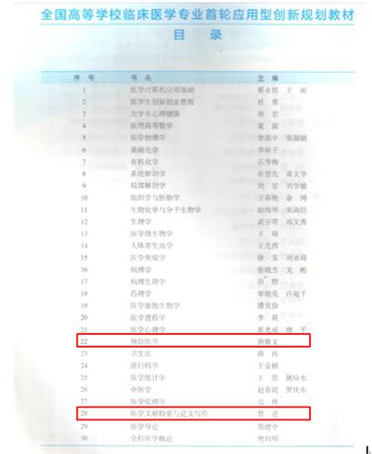 此外,新葡萄倪进东、官成浓、张志珍、胡新荣、徐道华五位教授作为副主编参加了《流行病学》、《全科医学概论》、《生物化学与分子生物学》、《病理学》、《药理学》创新规划教材编写。
