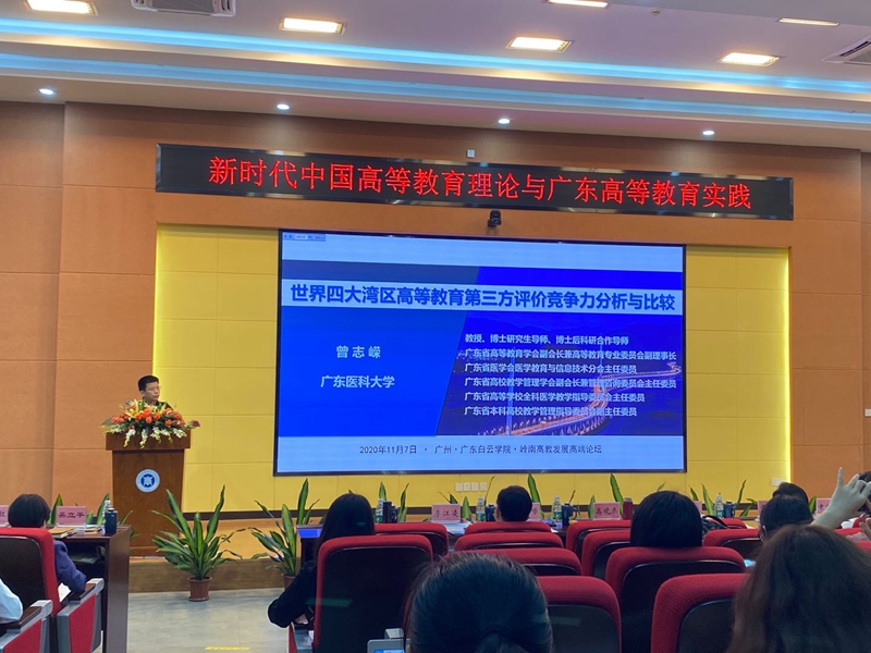 围绕本次论坛主题“新时代中国高等教育理论与广东省高等教育实践”,新葡萄副校长曾志嵘教授作了《世界四大湾区高等教育竞争力的评价与比较》的报告,曾教授主要从以下四方面对世界四大湾区高等教育进行了评价与比较:世界大学排名的产生、兴起与发展概况、大学评价的“第四只眼--大学第三方指数”、四大湾区高等教育竞争力评价及四大湾区高等教育竞争力评价结果对比。