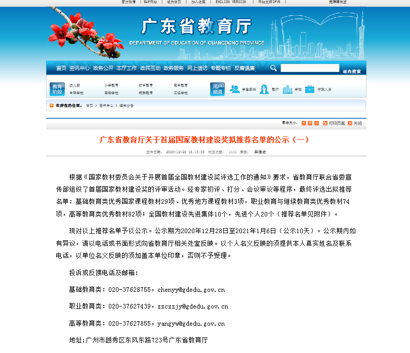 广东省教育厅网站公示截图