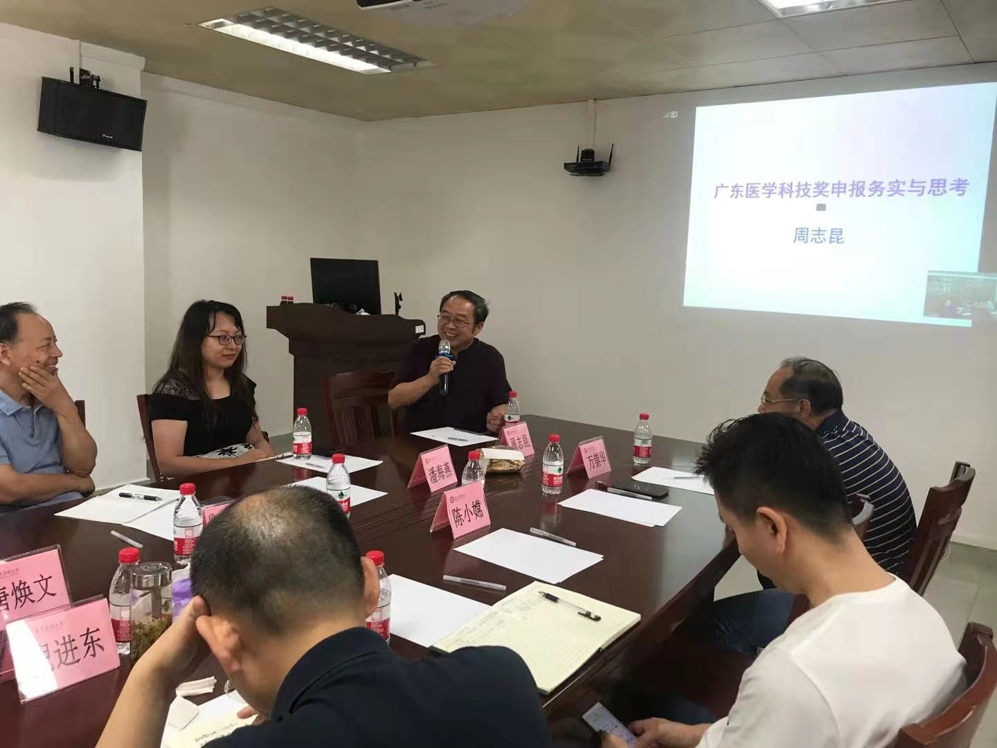 药学院周志昆教授分享了广东医学科技奖申报的实务和思考,对科技奖申报的重点展开了详尽的分析,并表示要突出成果中的亮点,强调了成果的原创性、系统性和临床疗效等方面的重要性。