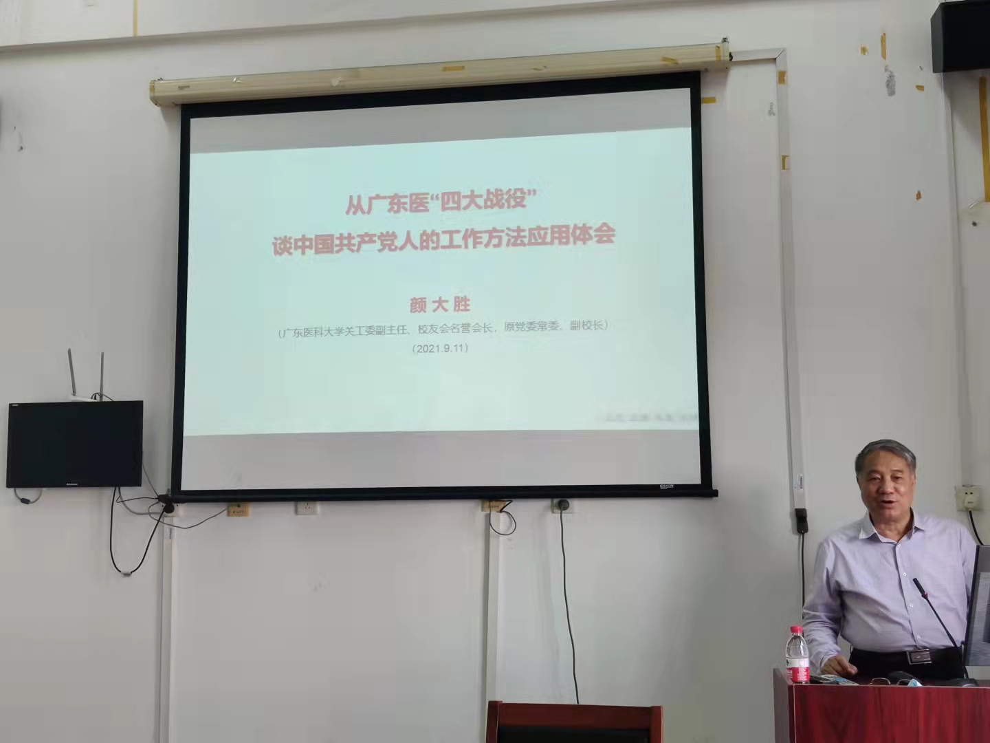 为提升马克思主义学院教师思政专业能力,马克思主义学院决定举办系列培训活动。2021年9月11日,学院以工作方法为主题,邀请学校原党委常委、副校长颜大胜同志作了题为《从广东医‘四大战役’谈中国共产党人的工作方法应用体会》的讲座。马克思主义学院领导班子、党总支委员、纪检小组成员、各支部书记和支委、各教研室正副主任、办公室全体人员参加了本次讲座,讲座由马克思主义学院黄祖辉院长主持。