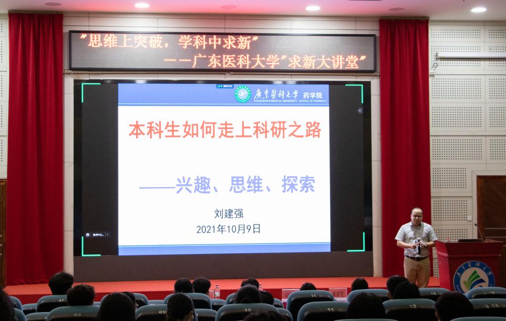 为了帮助同学们在学科上突破所学内容,在实践中求新、创新。10月11日,由新葡萄求新书院和药学院团委共同举办的“求新大讲堂”以“线上+线下”形式同步开展。求新大讲堂以“塑格立德、强基立功、践悟立言、提能立艺”为目标,聚焦大学生“求新思维、求新精神、求新能力”进行重点培育,得到了众多老师和同学的关注与支持,特邀药学院硕士生导师刘建强教授担任主讲人,与260余名学生共同参与了本次讲座。
