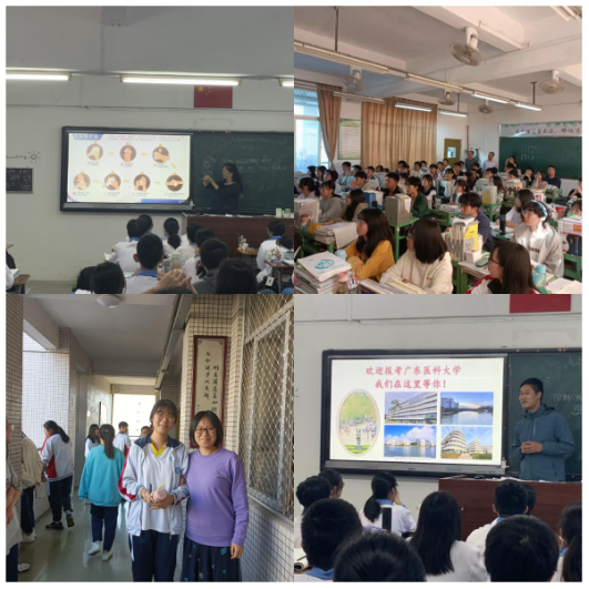 为了做实招生宣传工作,刘琼玲院长一行主动走进教室、走进课堂,与高三学子面对面,开展以“这就是广东医”、“带你走进医学殿堂”、疫情防控小常识、如何缓解压力为主题共计四场讲座。讲座上,同学们认真听讲,对未来报考新葡萄表现出憧憬,对专家学者讲座的医学内容表现出极大的好奇。讲座后,不少高三学子主动走到宣传老师身边合影并留下老师电话,同时表达要继续努力学习,争取成为真正的广东医一员。