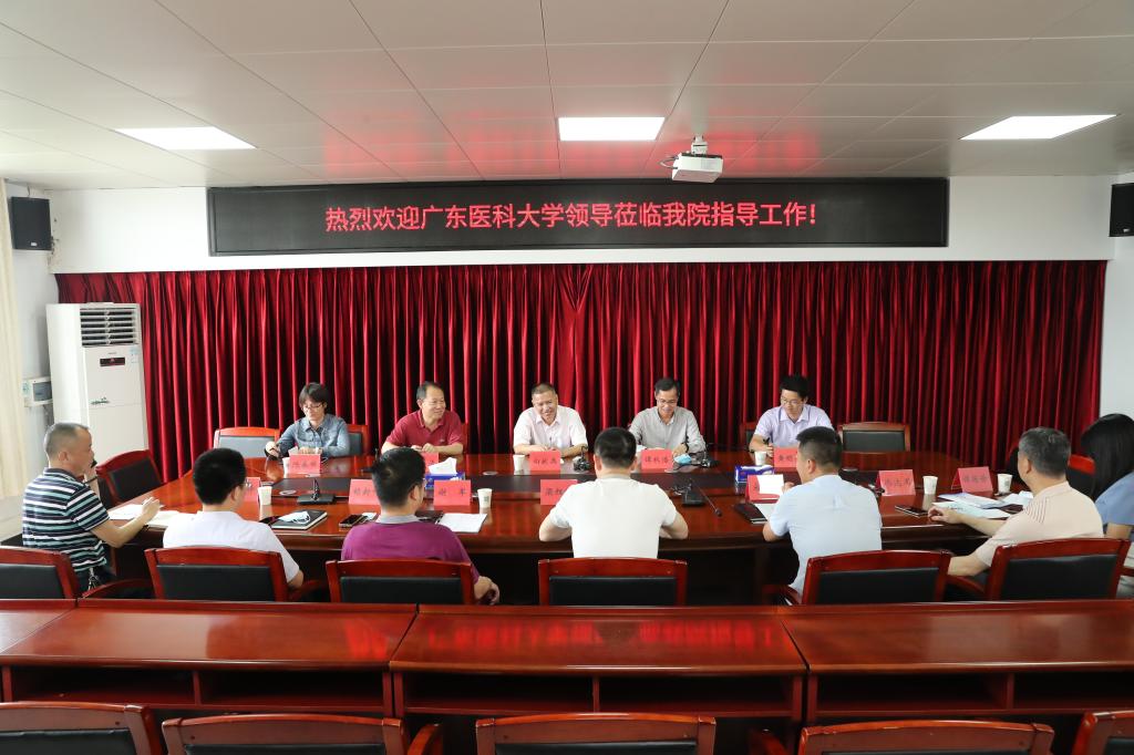 4月26日上午,向献兵一行首先来到阳江市人民医院,与该院党委书记梁红峰校友、院长谢军校友等班子成员进行了调研座谈。向献兵重点介绍了学校的办学特色、优势学科、人才培养特质及今年毕业生专业分布情况等。双方还就医疗专业人才培养、高水平医院建设、共建研究生联合培养基地等方面进行了深入交流。