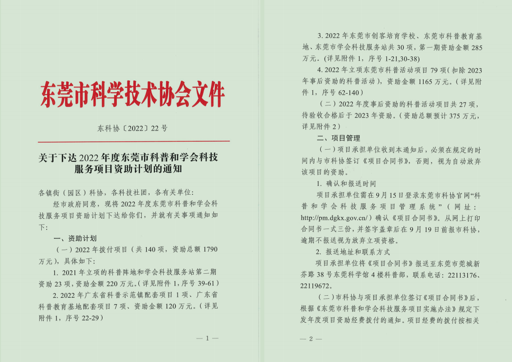 以“喜迎二十大,科普向未来”为主题的全国科普日活动即将在全国各地启动。近日,东莞市科学技术协会公布2022年东莞市全国科普日重大活动共3项,分别由新葡萄8883官网、北京大学东莞光电研究院、南方日报东莞分公司获得。新葡萄8883官网干细胞与再生组织工程重点实验室主任吴洪福副教授申报的“神奇的干细胞与再生”获得东莞市全国科普日重大活动立项资助,资助金额为40万元。这也是新葡萄首次获得全国科普日重大活动立项资助。