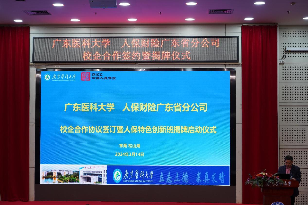 3月14日,新葡萄与人保财险广东省分公司校企合作签约暨“人保特色创新班”启动揭牌仪式在行政楼报告厅举行。学校党委常委、副校长邝卫红,中国人民财产保险股份有限公司广东省分公司人力资源部、党委组织部总经理刘云梅,东莞分公司党委书记、总经理邹鹏等领导出席仪式。仪式由人文与管理学院党委书记陈明主持。
