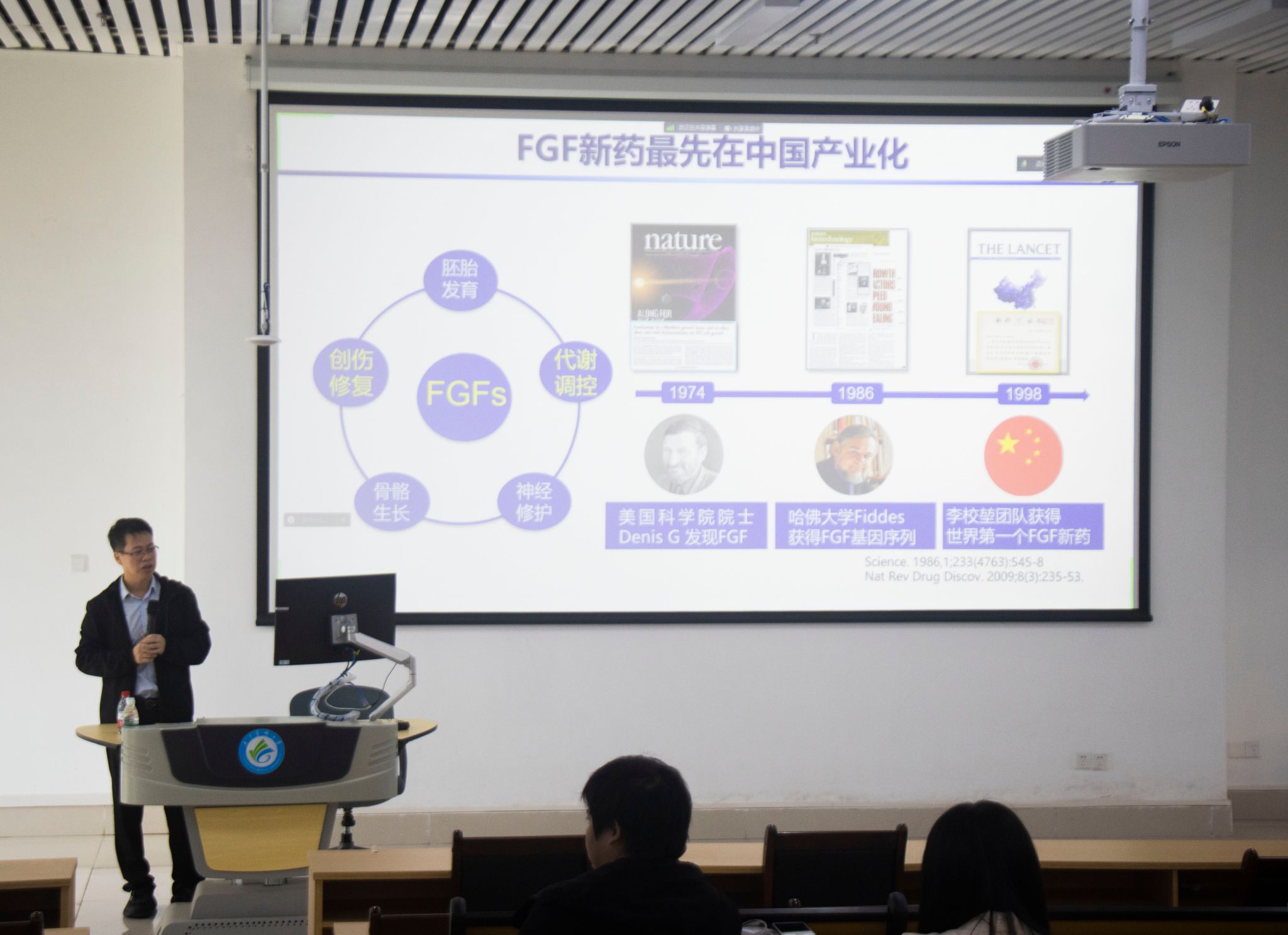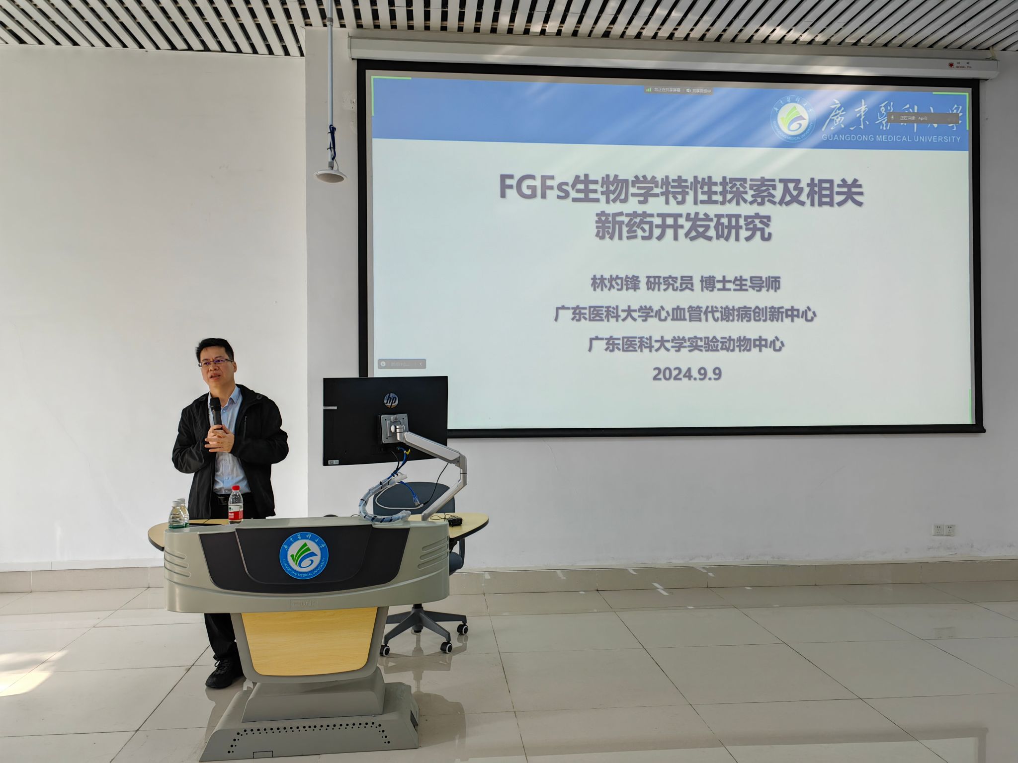 为深化药学院学生对FGFs生物学特性及其在新药开发领域最新进展的理解与探索,激发科研精神,秉持以技术创新为驱动的理念,专注于医药研发深耕细作。根据学校学生培养总体部署和学院教学工作安排,12月3日上午,博士生导师林灼锋教授来到科技楼B102室为药学院全体研究生学子开展专题讲座。