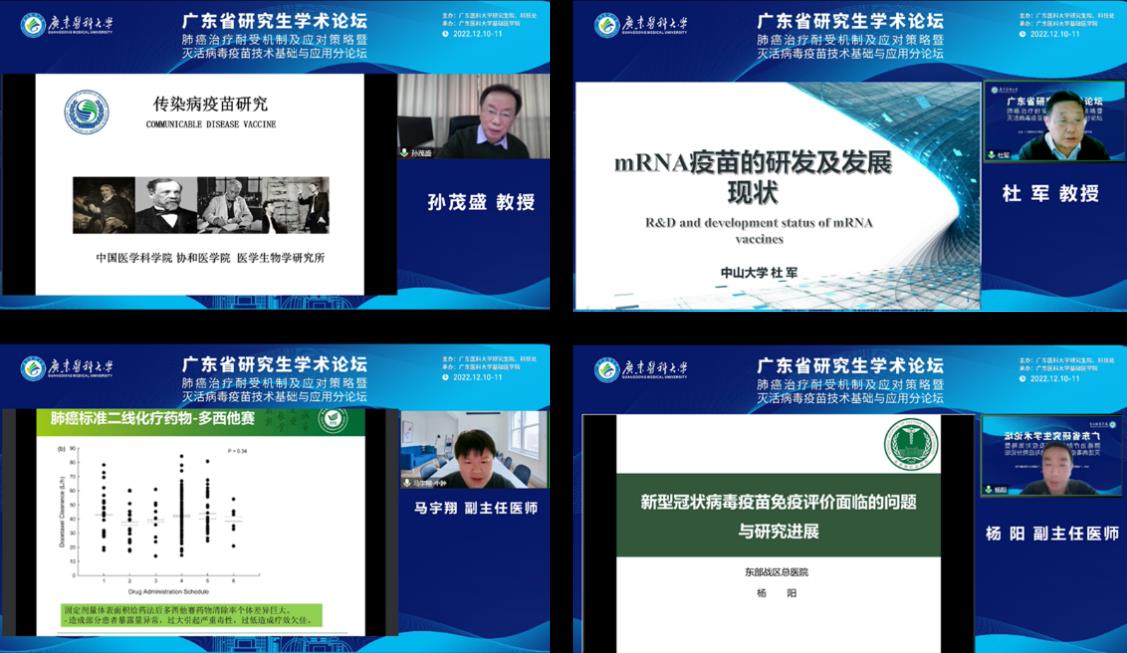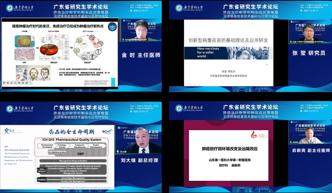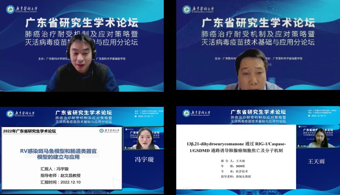 2022年12月10日至11日,由新葡萄8883官网研究生院、科技处主办,基础医学院承办,为期两天的“肺癌治疗耐受机制及应对策略暨灭活病毒疫苗技术基础与应用”广东省研究生学术论坛以线上会议的形式成功举行。论坛由基础医学院张标副教授、衣艳梅副教授和孙艳芹副教授主持。