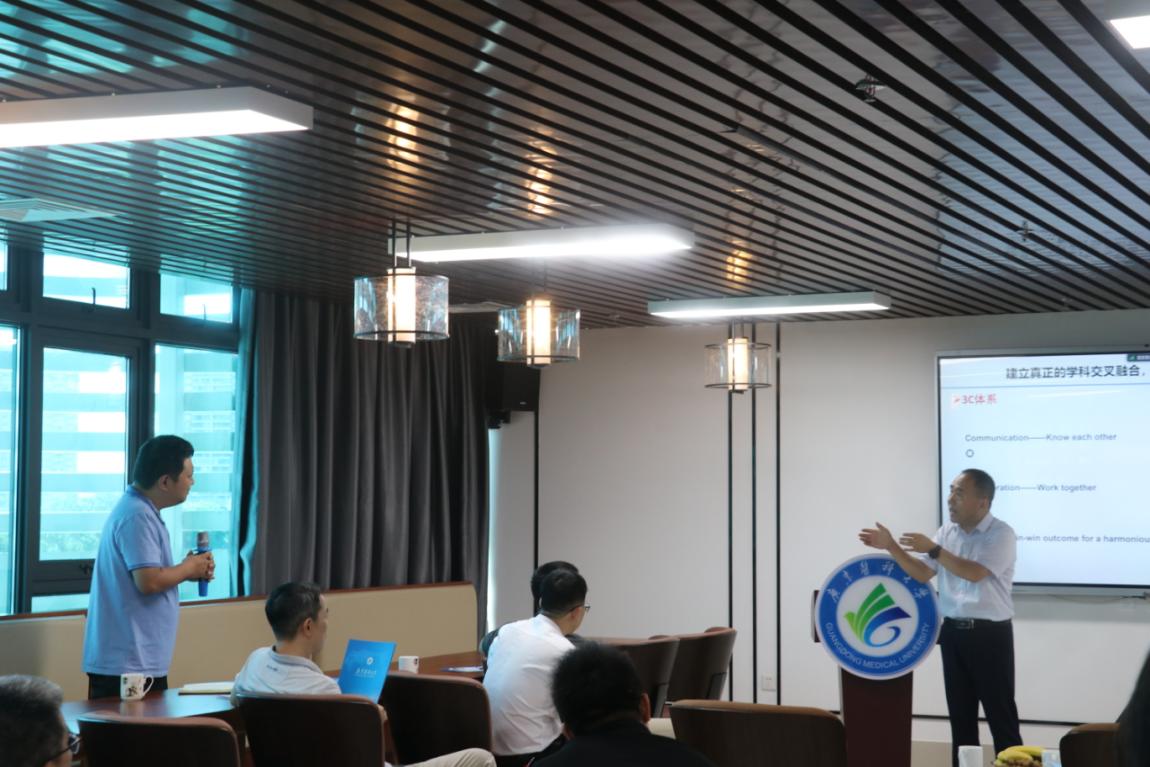 刘新光副校长介绍学校发展情况、松山湖医工融合创新中心的概况并致欢迎词,就王青云教授、韩芳、廖麟荣和王翀四位专家做线上线下报告表示热烈欢迎。随后,林林院长详细为与会人员对松山湖医工融合创新中心的建设目标、建设情况作详细介绍。