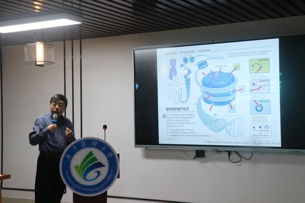 郝权教授发表题为《Sirtuin家族蛋白的结构生物学研究》的研究报告,介绍了Sirtuin家族蛋白的分类和研究历史。Sirtuin蛋白主要通过去除靶标蛋白赖氨酸的翻译后修饰(主要为乙酰化修饰)来调节众多细胞生理活动,郝权教授实验室先后解析了多种Sirtuin蛋白的晶体结构,并创新性地发现Sirt5的去琥珀酰化修饰功能以及Sirt6通过去豆蔻酰化修饰调控TNF-alpha的分泌等。报告结束后,郝权教授和现场师生进行了交流和讨论,详细解答了大家提出的问题,并对基于Sirtuin蛋白晶体结构的药物设计和应用进行了展望。