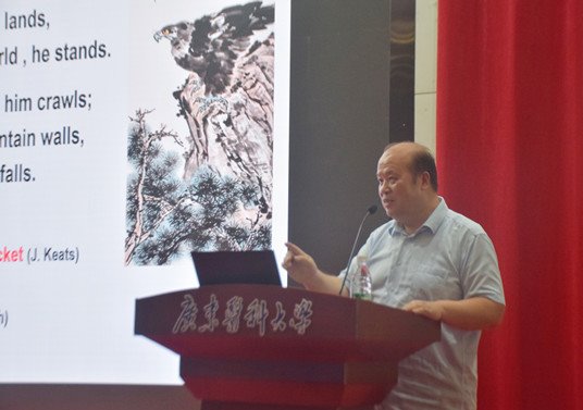 张保红教授是广东外语外贸大学二级教授、博士、博士生导师,研究领域涵盖翻译理论与实践以及文学翻译跨艺术研究,曾多次主持国家和省级研究项目,在《中国翻译》等高水学刊上发表学术论文80余篇。本次讲座张教授结合骆宾王的《咏鹅》和丁尼生的《Sweet and Low》诗歌的英汉翻译实践,运用多种方法探讨诗歌翻译理解与表达过程,展示文学翻译的基本途径和策略,探索文学与艺术之间的交互影响与创新。(文/祝海林 吴湘如 图/梁炜怡 邱越 审核/冯有辉 复核/周圆 审发/裴金涛)